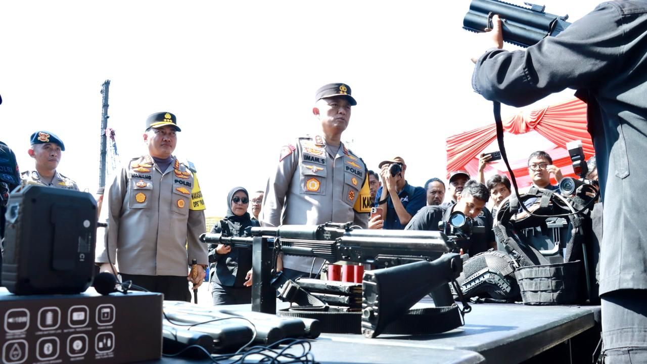 TIKTA.id, Banyuwangi - Menjelang Konferensi Tingkat Tinggi World Water Forum ke-10 Tahun 2024 (WWF) di Bali, 18-25 Mei 2024, Kapolda Jatim Irjen Pol. Drs. Iman Sugianto, M.Si, Pangdam V/Brawijaya Mayjen TNI Rafael Granada Baaydan dan Koskoarmada II Laksma TNI Isswarto, memimpin gelar pasukan TNI, Polri, dan Pemprov Jatim di Pelabuhan Tanjung Wangi, Banyuwangi.
