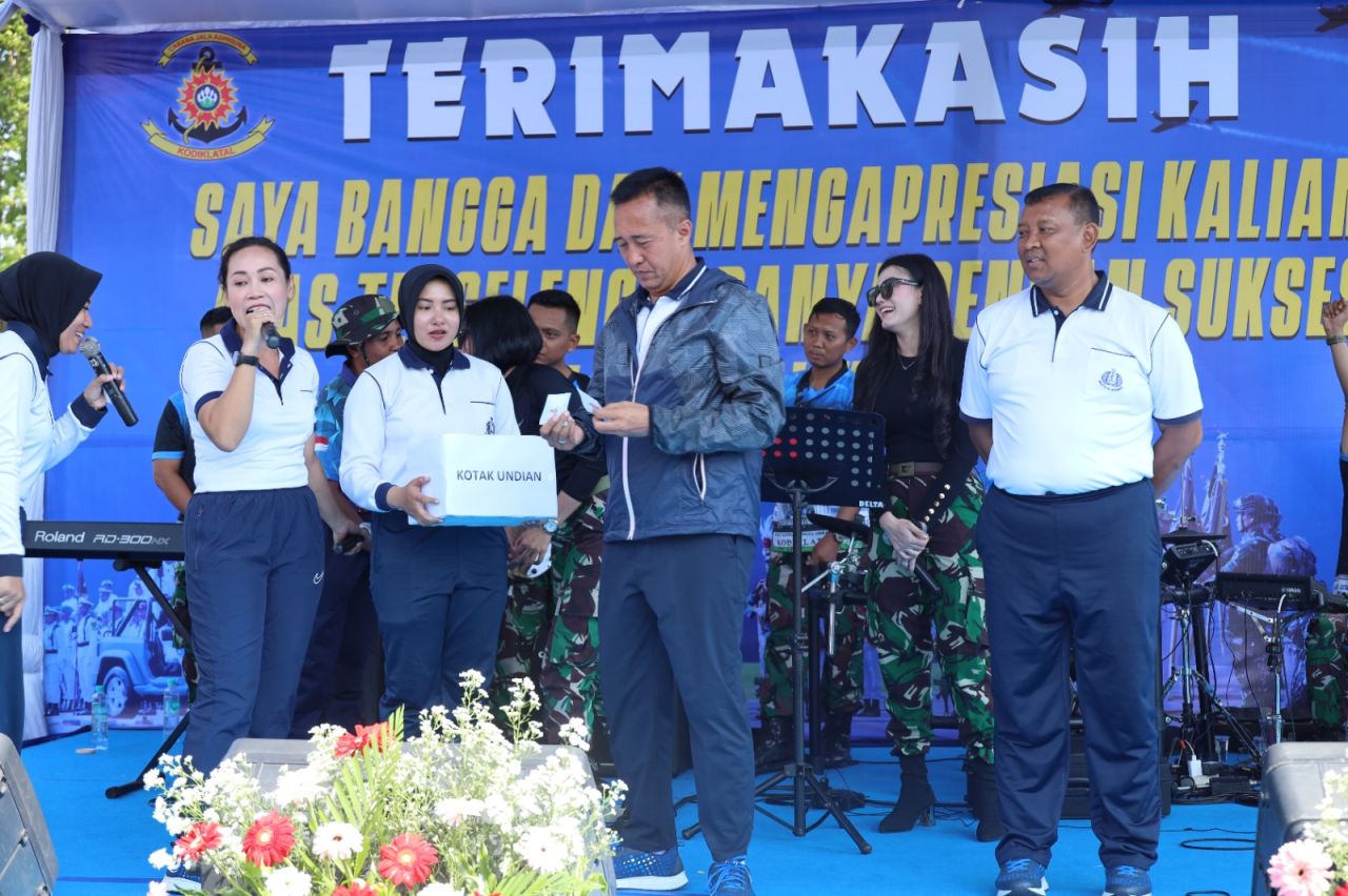 TIKTA.id, Surabaya - Usai pelaksanaan rangkaian Hari Pendidikan TNI Angkatan Laut (Hardikal) Ke-78, Komandan Kodiklatal (Dankodiklatal) Letjen TNI Marinir Nur Alamsyah didampingi Ketua Gabungan Jalasenastri Kodiklatal Ayu Nur Alamsyah mengajak seluruh Anggota Tetap (Antap) dan Siswa Kodiklatal melaksanakan olah raga bersama