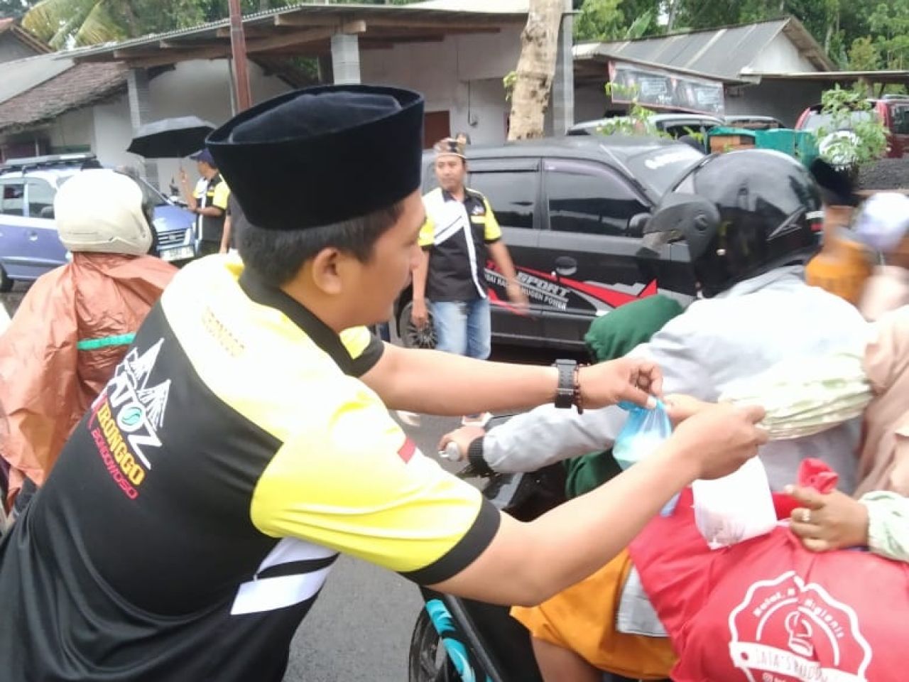 BONDOWOSO - Komunitas mobil Atoz Ki Ronggo Bondowoso (AKB) menyantuni lima 5 anak yatim, dan membagikan 400 takjil di kawasan lapangan Desa Mengok Kecamatan Pujer, Kabupaten Bondowoso Jawa Timur, Sabtu (22/3) sore.